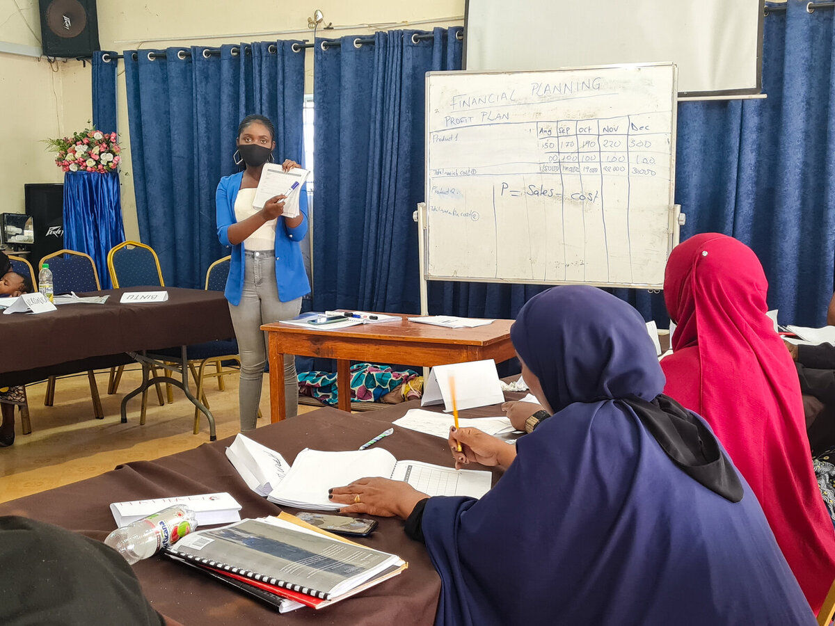 Pictured: Grace Banda, A Caritas Czech Republic Trainer facilitating an Entrepreneurship Skills workshop for vulnerable women and girls in Lusaka