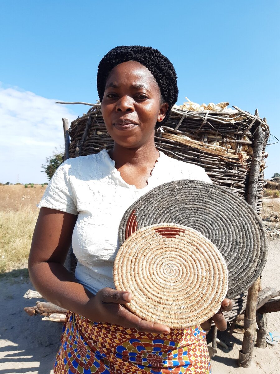 With the skill that she learnt, Beya now sews shirts, uniform skirts and dresses. Because she is a proactive young woman, she also took time to learn how to weave baskets when she saw other women doing it in the church.