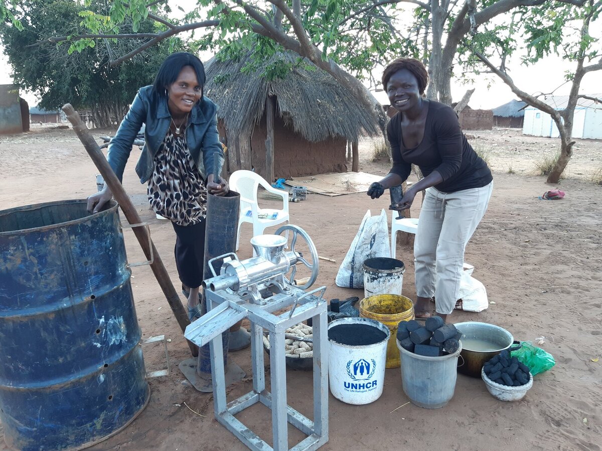 Meet Sophie Kabamba Mukeny (45 married and mother of 7 children) and Elizabeth Kapinga (32, single), Congolese refugees living in Mayukwayukwa refugee settlement. They are part of the group of 20 women who were trained in 2021 by Caritas Czech Republic in making environmentally friendly green charcoal.